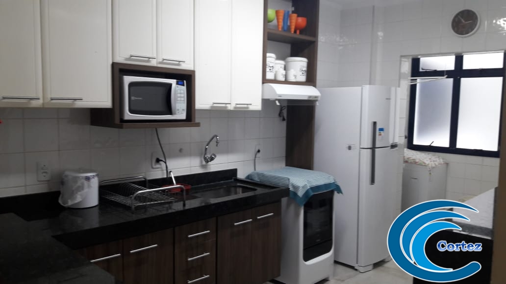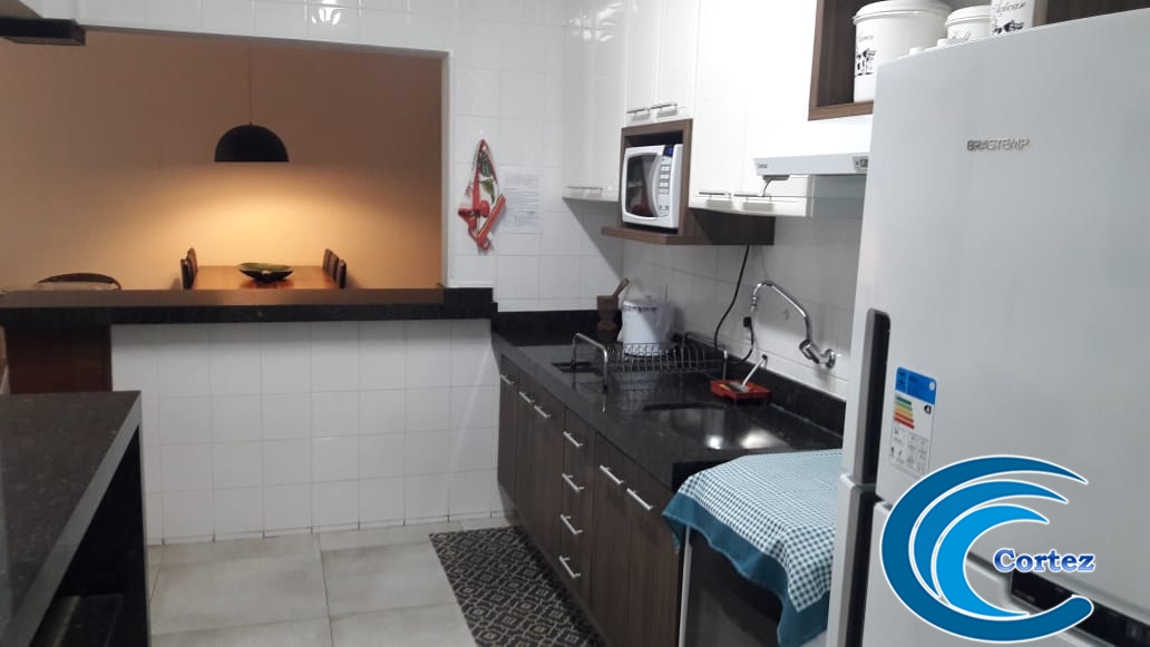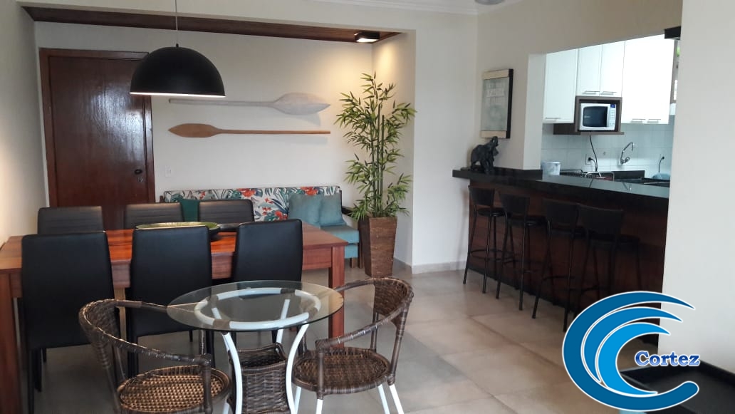 Lindo apartamento com vista para o mar! São 2 dorms (1 suíte) com ar condicionado, varanda, cozinha, área de serviço e sala de estar/jantar com ventiladores de teto.